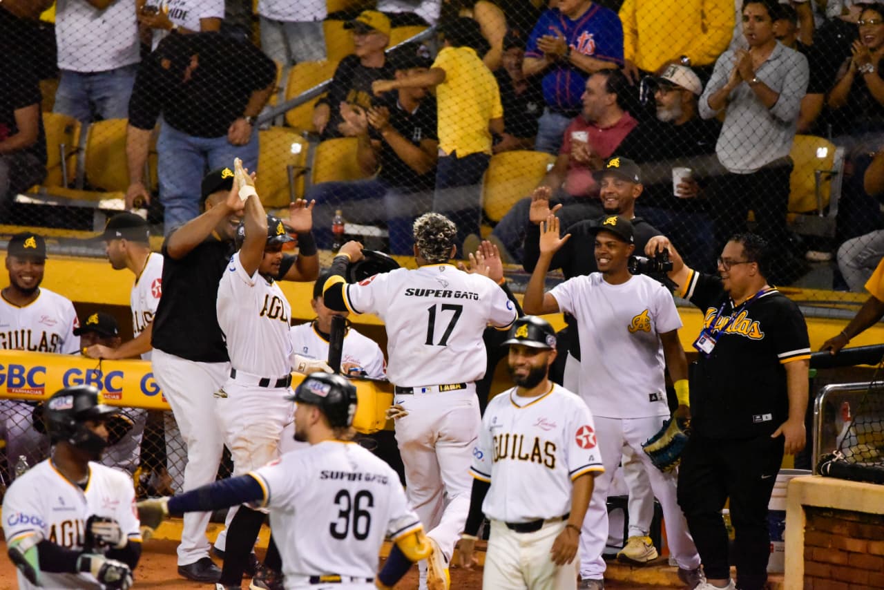 SANTIAGO.– Las Águilas Cibaeñas derrotaron 5-4 a las Estrellas Orientales, aseguraron la serie particular y alcanzaron su victoria 19 de la temporada, líderes del campeonato. En el Estadio Cibao, acumulan 11 victorias y sólo una derrota.