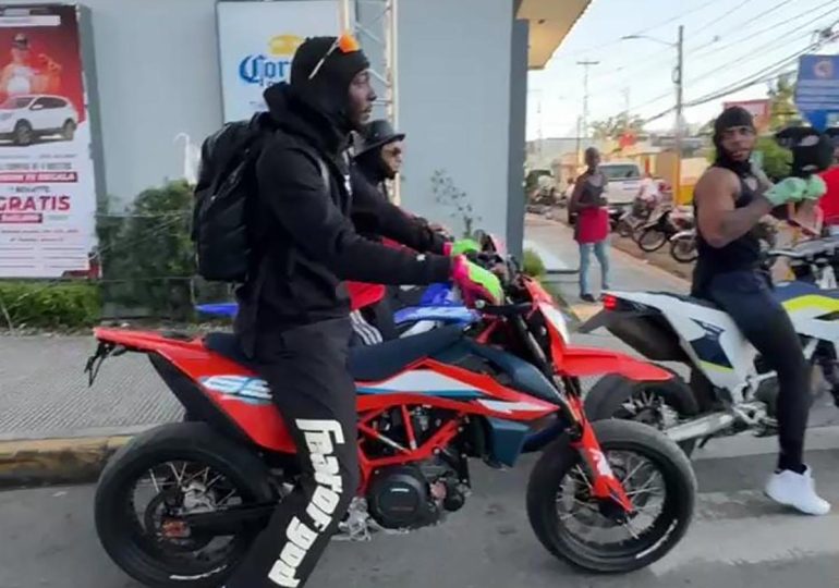 Elly de la Cruz, jugador dominicano de Rojos Cincinnati, recorre calles República Dominicana en motocicleta KTM 690 SMC R valorada aproximadamente 12 mil dólares.