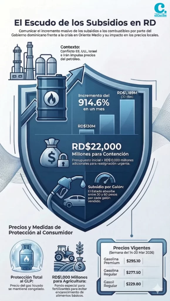 El Gobierno dominicano aumentó en casi mil por ciento los subsidios a los combustibles como consecuencia directa del conflicto bélico en el Medio Oriente.