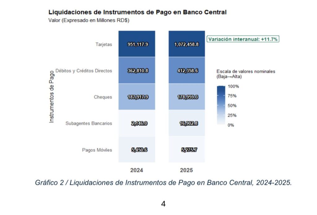 Operaciones mediante tarjetas pago crecieron 12.8 %, alcanzando RD$1,072.5 mil millones, consolidándose principal instrumento pago establecimientos comerciales por comodidad y financiamiento.