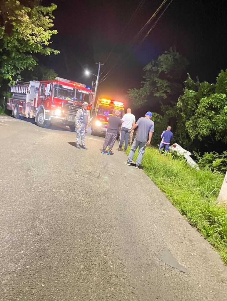 La unidad B-9 del Cuerpo de Bomberos acudió rápidamente, asegurando el área y coordinando labores de rescate del vehículo accidentado en Los Hidalgos.