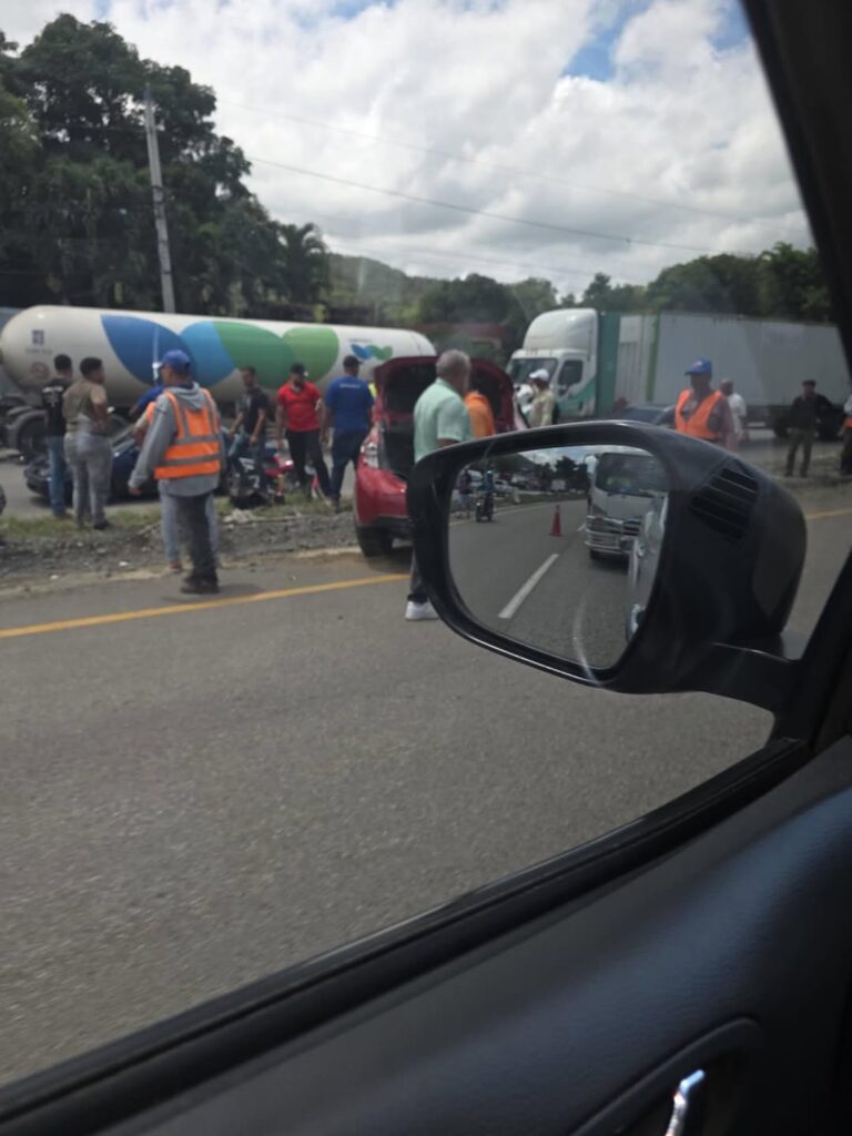 Un accidente de tránsito se produjo a la una de la tarde de hoy en la autopista Duarte tramo El Pino de La Vega.