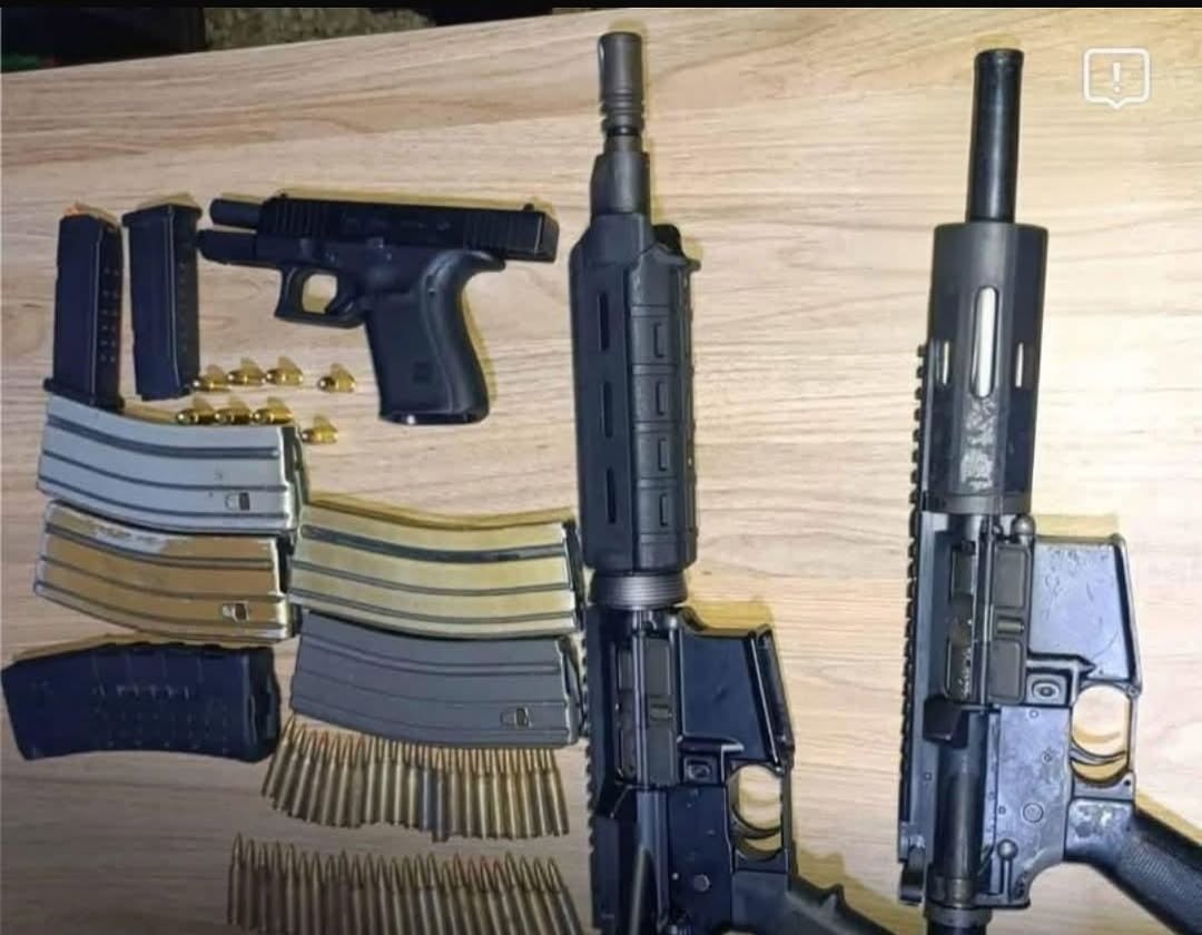 Durante la requisa, agentes ocuparon pistola Glock calibre 9 milímetros con dos cargadores y ocho cartuchos, además de dos fusiles M16A calibre 5.56.