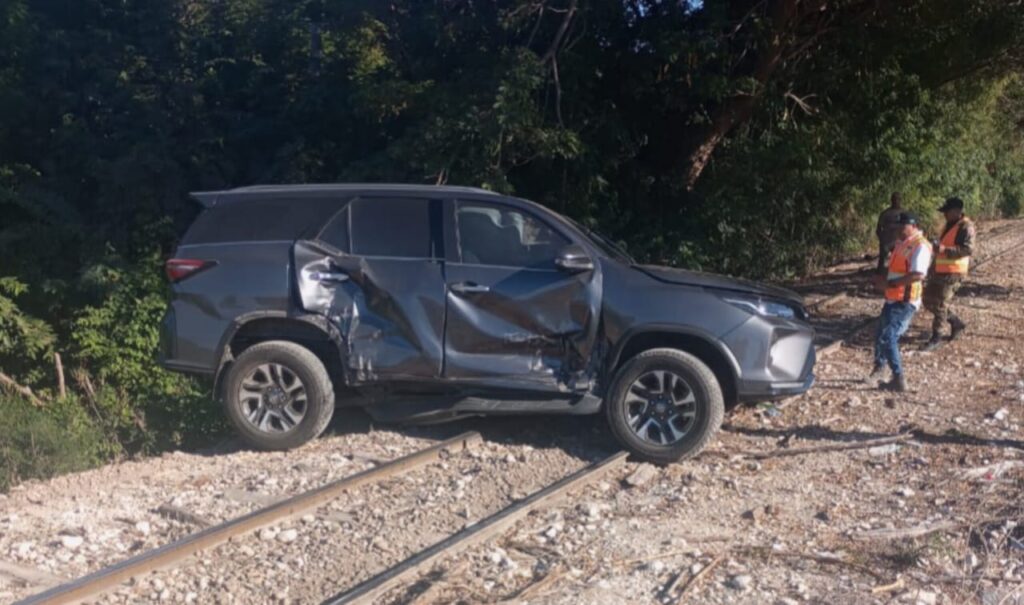 En Barahona, una locomotora del Consorcio Azucarero Central impactó una yipeta Toyota Fortuner, convirtiendo tranquila tarde en aparatoso accidente que pudo ser tragedia.