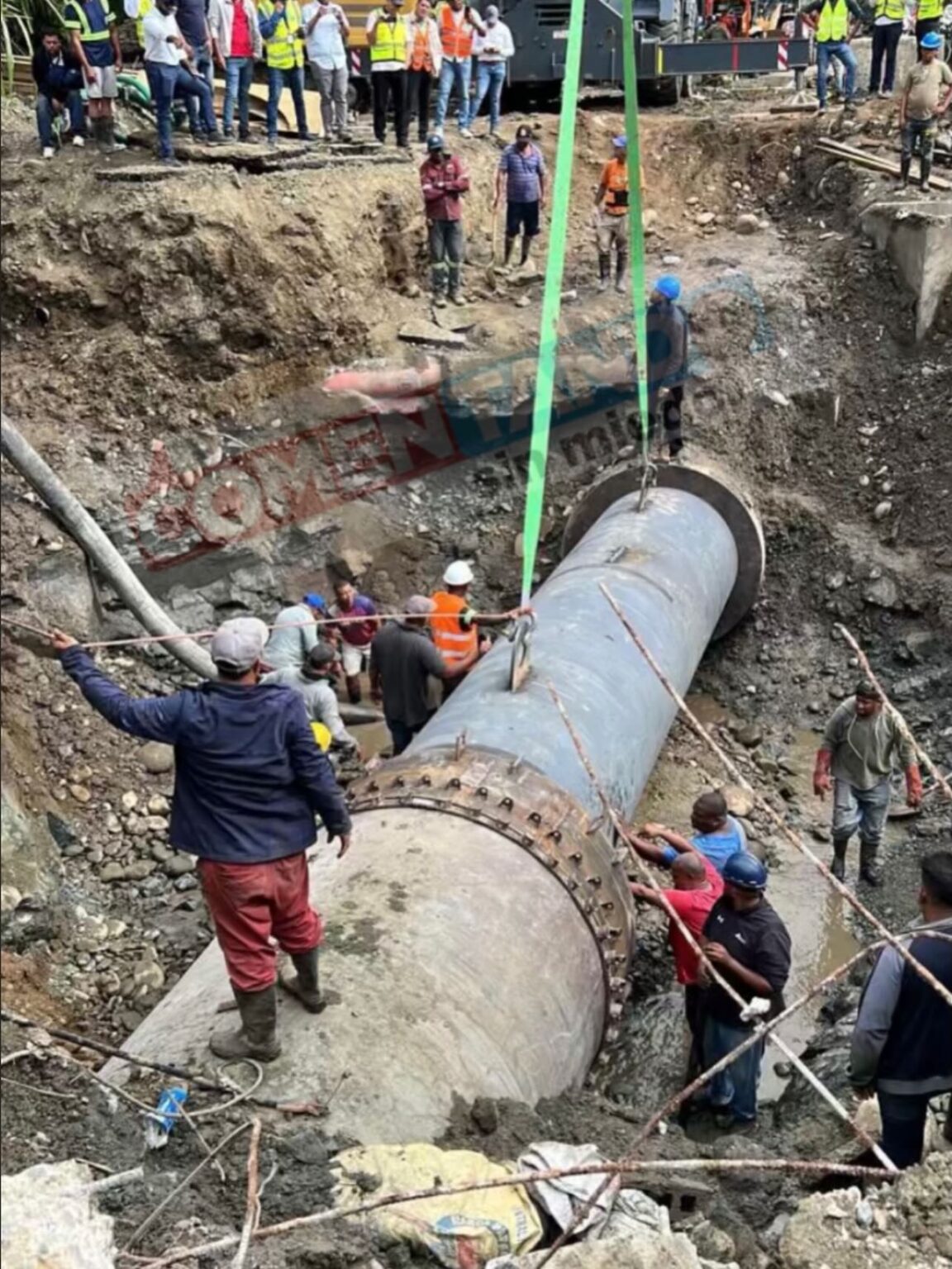 La tubería afectada es considerada una de las más importantes del sistema, ya que conduce aguas crudas hacia los acueductos de Noriega II y La Dura Moca, con una capacidad de conducción de 5 metros cúbicos por segundo, equivalente a 115 millones de galones diarios (MGD), lo que la convierte en una infraestructura estratégica para el abastecimiento de agua en el Cibao Central.