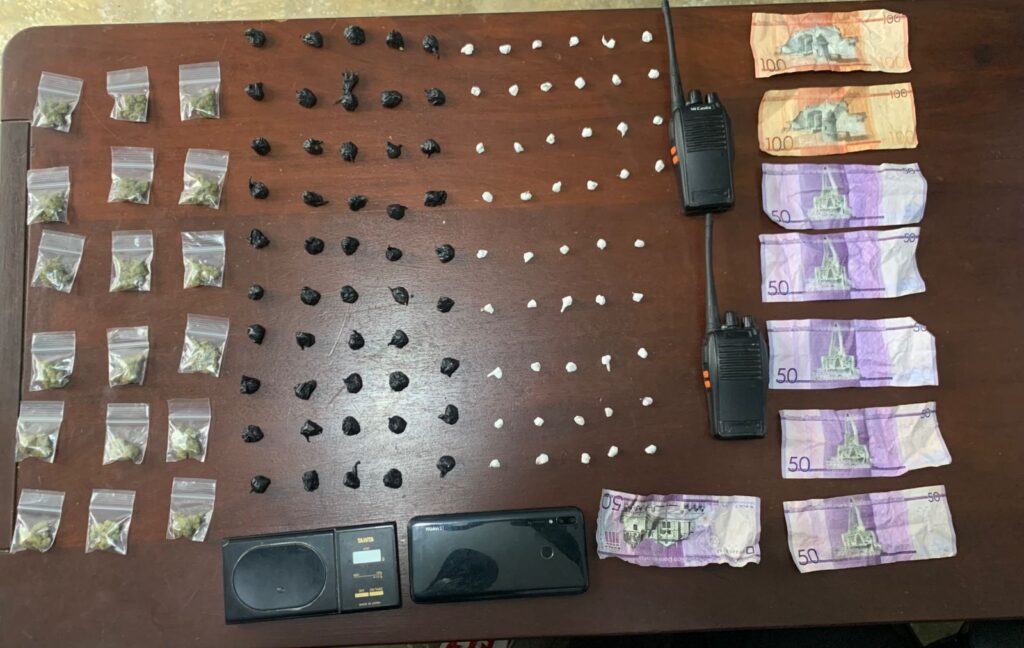 También se incautaron cuarenta y nueve porciones de un material rocoso presumiblemente crack una balanza marca Tanita y dos radios de comunicación portátil muy modernos.
