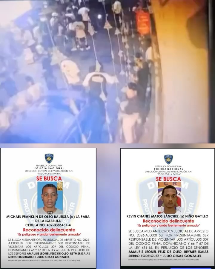 Los prófugos identificados como Michael Franklyn De Óleo Batista, alias “La Para de la Isabelita”, y Kevin Chanel Matos Sánchez, alias “Niño Gatillo”.