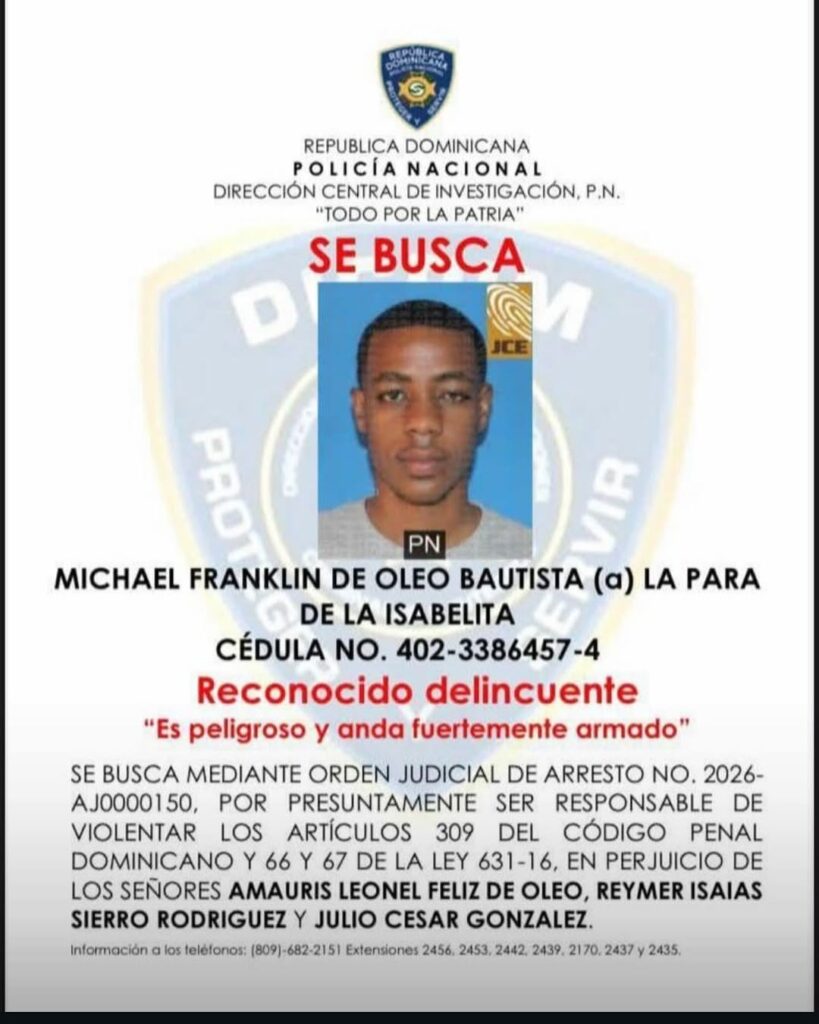 Autoridades catalogaron a los implicados como altamente peligrosos, señalando que andan fuertemente armados y perseguidos por muerte del agente Amauris Leonel Feliz De Óleo.