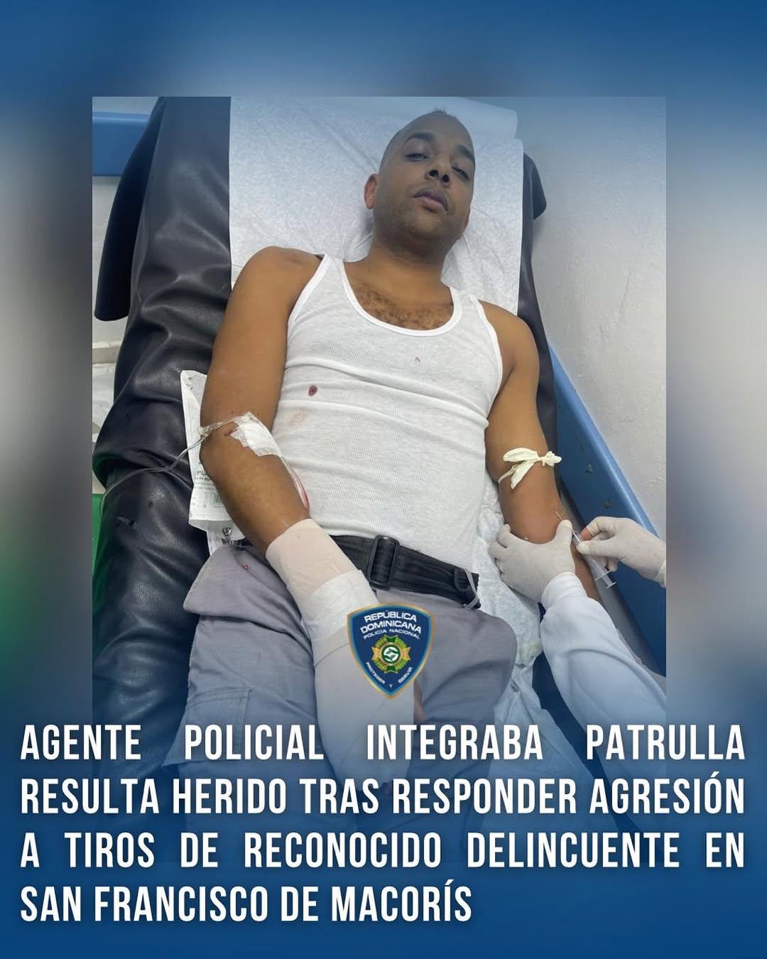 La Policía Nacional informó que un agente resultó herido por proyectil de arma de fuego durante intervención policial ocurrida la noche del jueves 25 diciembre.