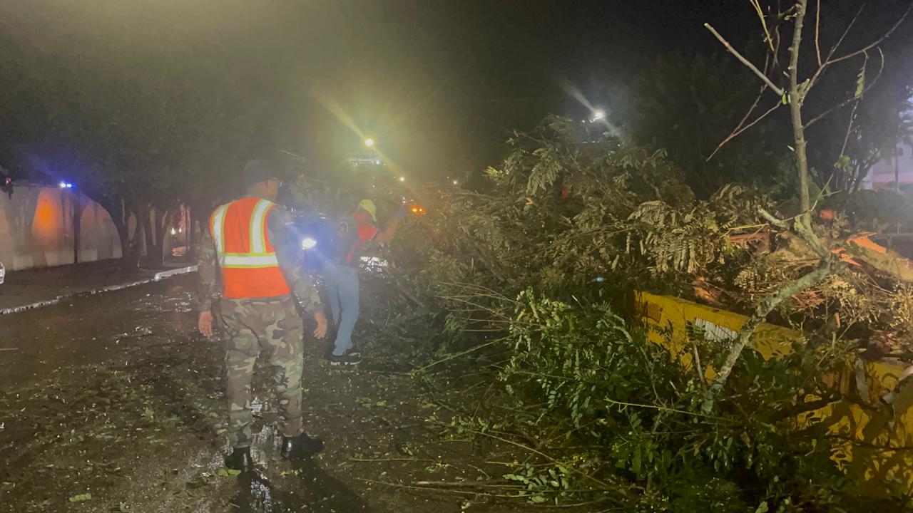 Miembros del Cuerpo de Bomberos de Santiago acudieron al lugar para realizar labores de limpieza y retirar los árboles que obstruían el paso, mientras agentes de la Dirección General de Seguridad de Tránsito y Transporte Terrestre (DIGESETT) se desplegaron en el área para viabilizar el tránsito.El director de la Defensa Civil en Santiago, Francisco Arias, informó que además de la caída de árboles, se produjeron inundaciones urbanas en importantes vías como la avenida 27 de Febrero, la Circunvalación Sur y otros puntos del municipio, provocando largos embotellamientos y malestar entre conductores y peatones