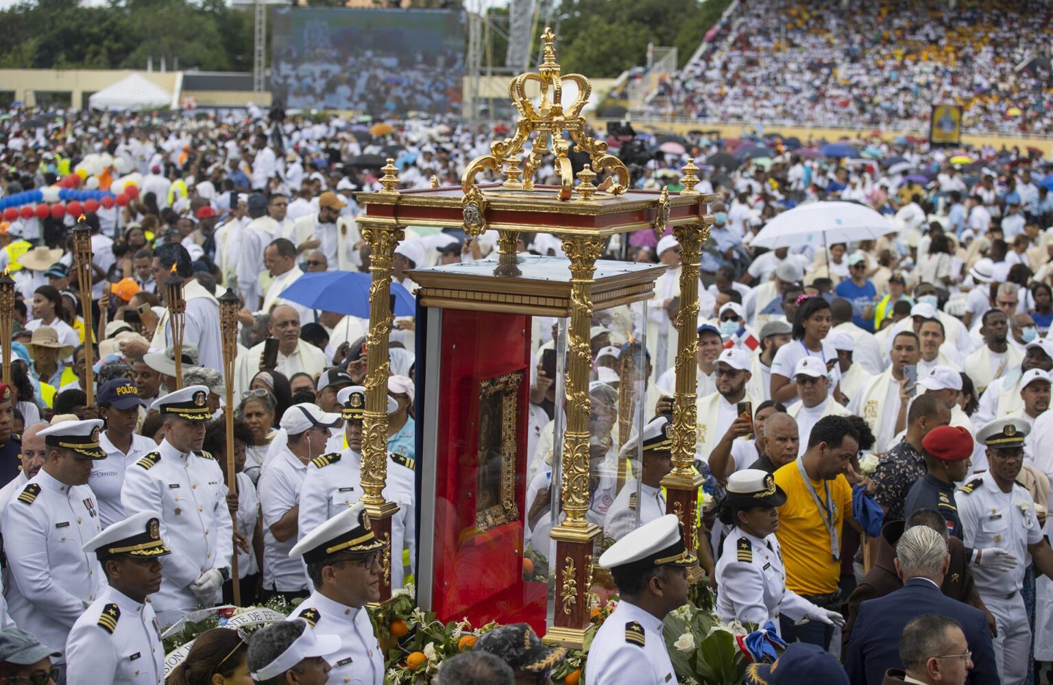 El Santuario Nuestra Señora de La Altagracia fue abarrotado de devotos que también se aglomeraron en sus alrededores y llenaron tramos de las calles adyacentes.