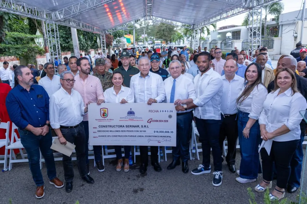 El ministro Andrés Bautista García junto al alcalde de Moca encabezó el acto de inicio de los trabajos de construcción del nuevo parque lineal.