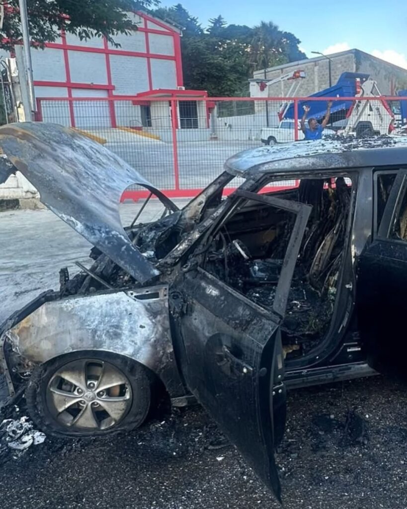 La comunicadora dominicana relató que automóvil comenzó a expulsar humo y olor a quemado, logrando escapar antes de que llamas consumieran vehículo.