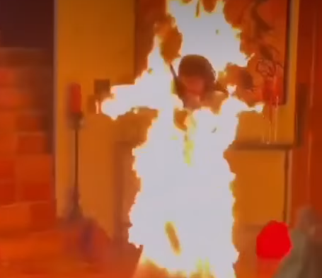 El uso del fuego parece tener un sentido simbólico dentro de la narrativa visual representando la transformación y el renacimiento creativo de la famosa intérprete.