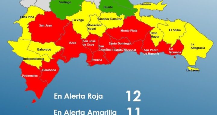 COE mantiene 12 provincias en alerta roja, 11 en amarilla y 3 en verde ante Melissa