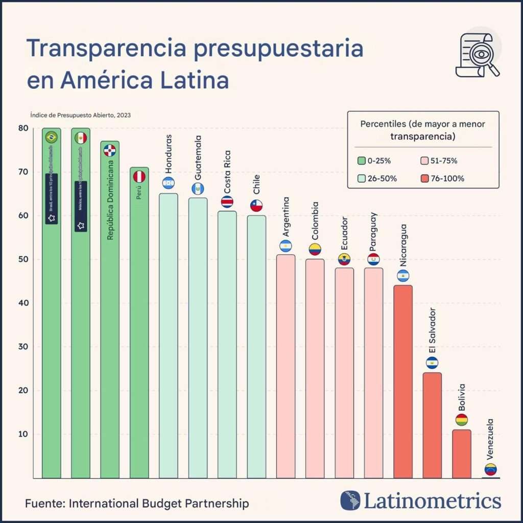 El informe está acompañado de un gráfico encabezado por la pregunta: “¿Alguna vez te has preguntado por qué algunos países latinoamericanos ocultan sus presupuestos mientras otros muestran cada centavo gastado?”.