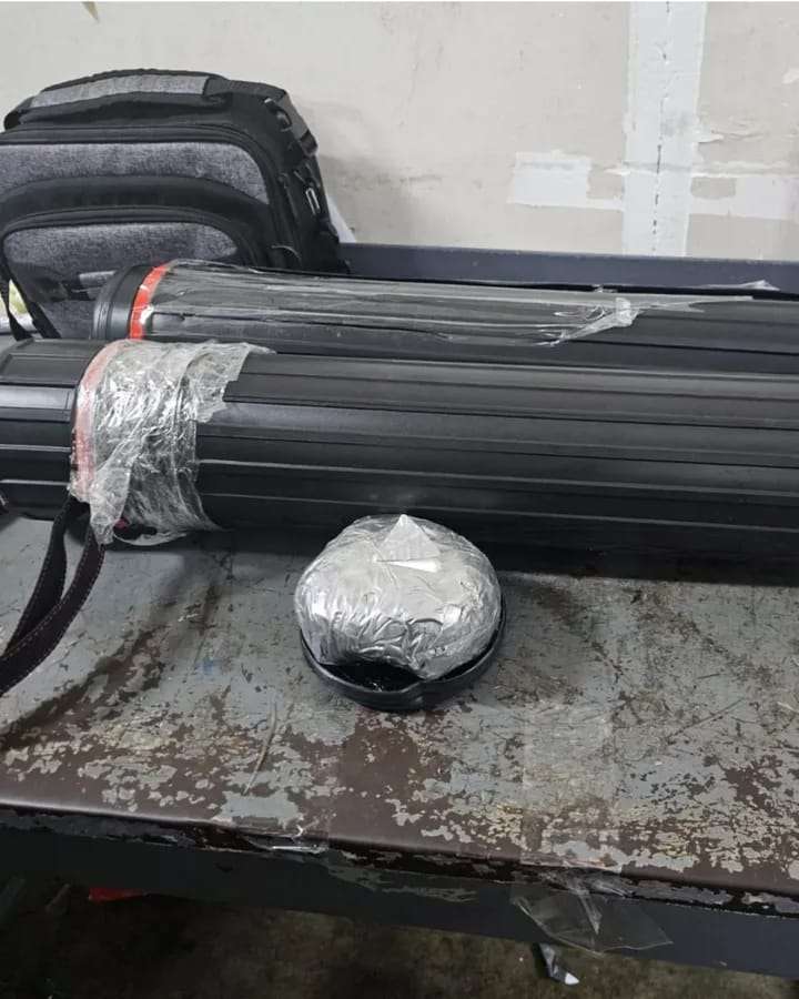 En un segundo operativo, realizado en el Inposdom, las unidades de la DNCD, apoyados por inspectores, intervinieron un paquete, donde se ocupó un portaplanos, conteniendo dentro (oculta) una porción de cocaína, con un peso preliminar de 385 gramos.