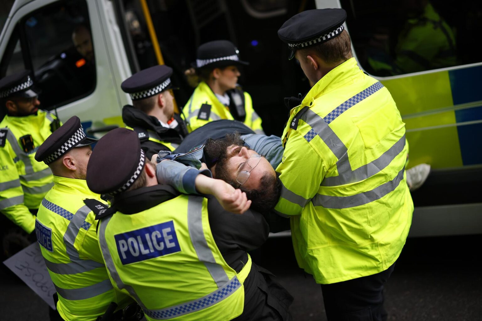 Los manifestantes lo ven de modo distinto: «Esta es una muestra del abuso masivo del poder del Gobierno y de la ley británica. Y yo estoy aquí para proteger el futuro de mis hijos en este país», dijo a EFE Camilla Clayton Jones, del grupo de manifestantes.