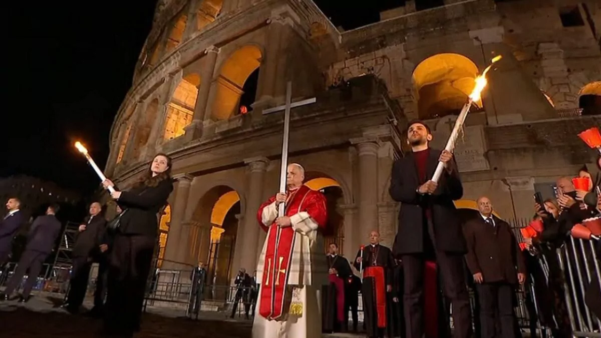 El rito que rememora el calvario de Jesús comenzó en el interior del Anfiteatro Flavio símbolo del martirio de los primeros cristianos en la antigüedad.