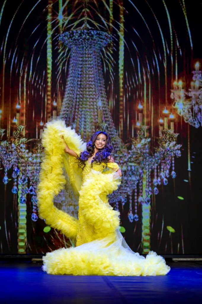 Por igual, a la diseñadora Alejandra Trujillo, quien confeccionó el traje Safary titulado «Armada de Cadenas de Amor Propio». Este traje está inspirado en el amor propio que cada mujer debe tener.