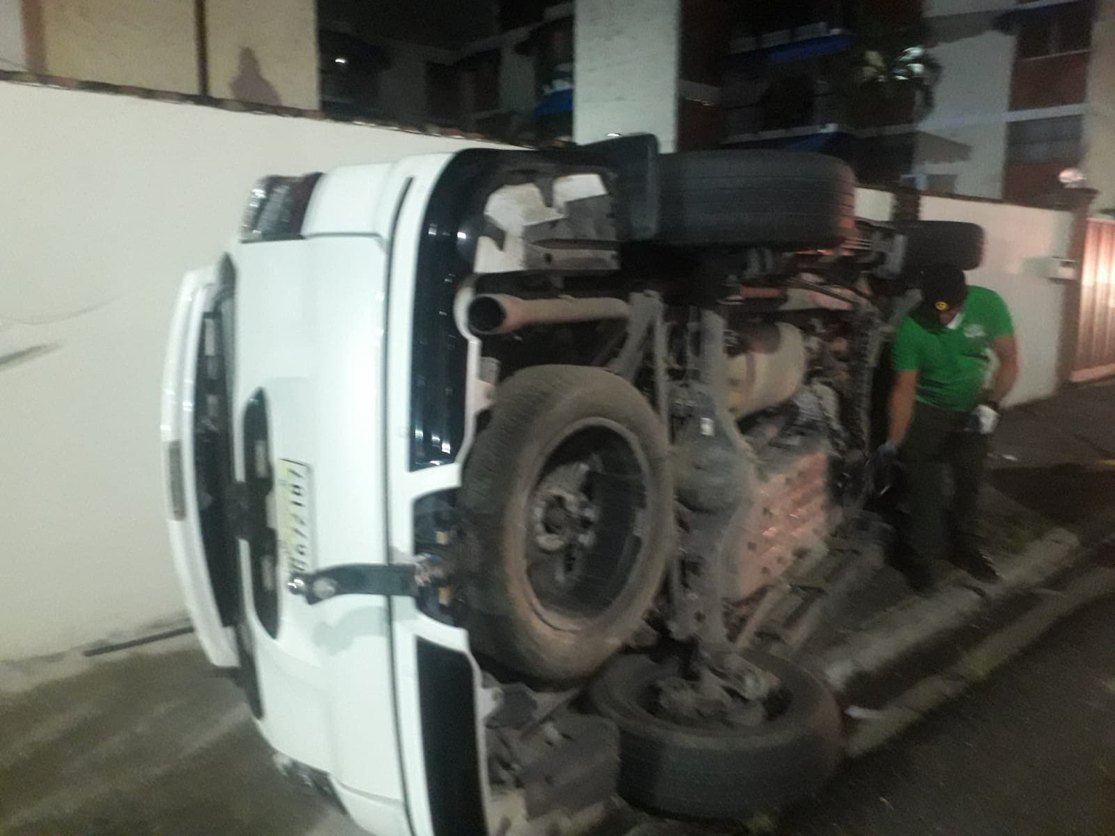 Automóvil Kia Stonic impactó yipeta Toyota 4Runner, provocando SUV placa G672187 diera varias vueltas y terminara 10 pies punto choque.
