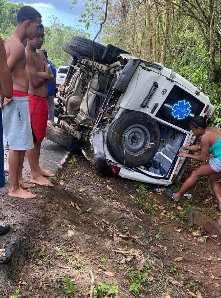 Como resultado los cinco ocupantes de la ambulancia resultaron heridos y asistidos por dos unidades de emergencia en una condición de salud delicada.