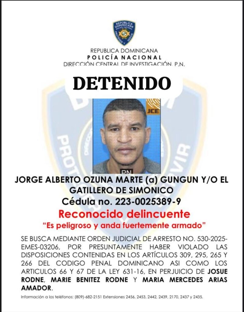Policía Nacional informó apresamiento Jorge Alberto Ozuna Marte, alias “Gungun”, señalado presunto autor ataque a tiros ocurrido 11 diciembre 2025 en Villa Duarte.