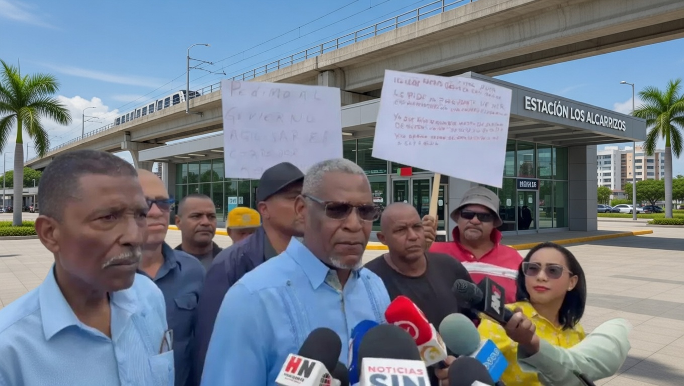 Choferes Los Alcarrizos, La Cuaba y municipios cercanos protestaron estación Pablo Adón exigiendo inclusión rutas alimentadoras Metro Santo Domingo.