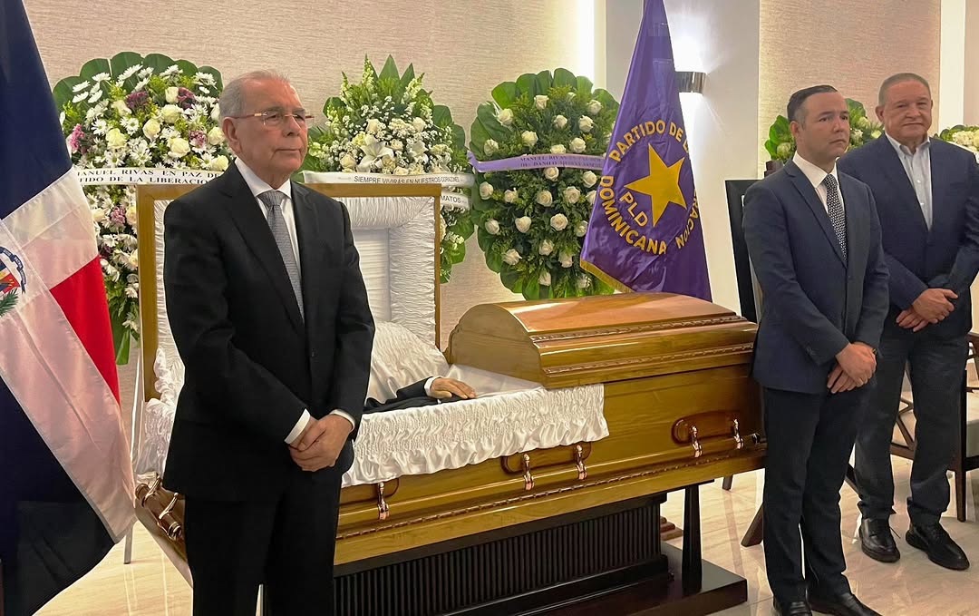 Danilo Medina y Johnny Pujols encabezaron guardia honor en velatorio Manuel Rivas, dirigente PLD fallecido, acompañado Comité Político y Comité Central.