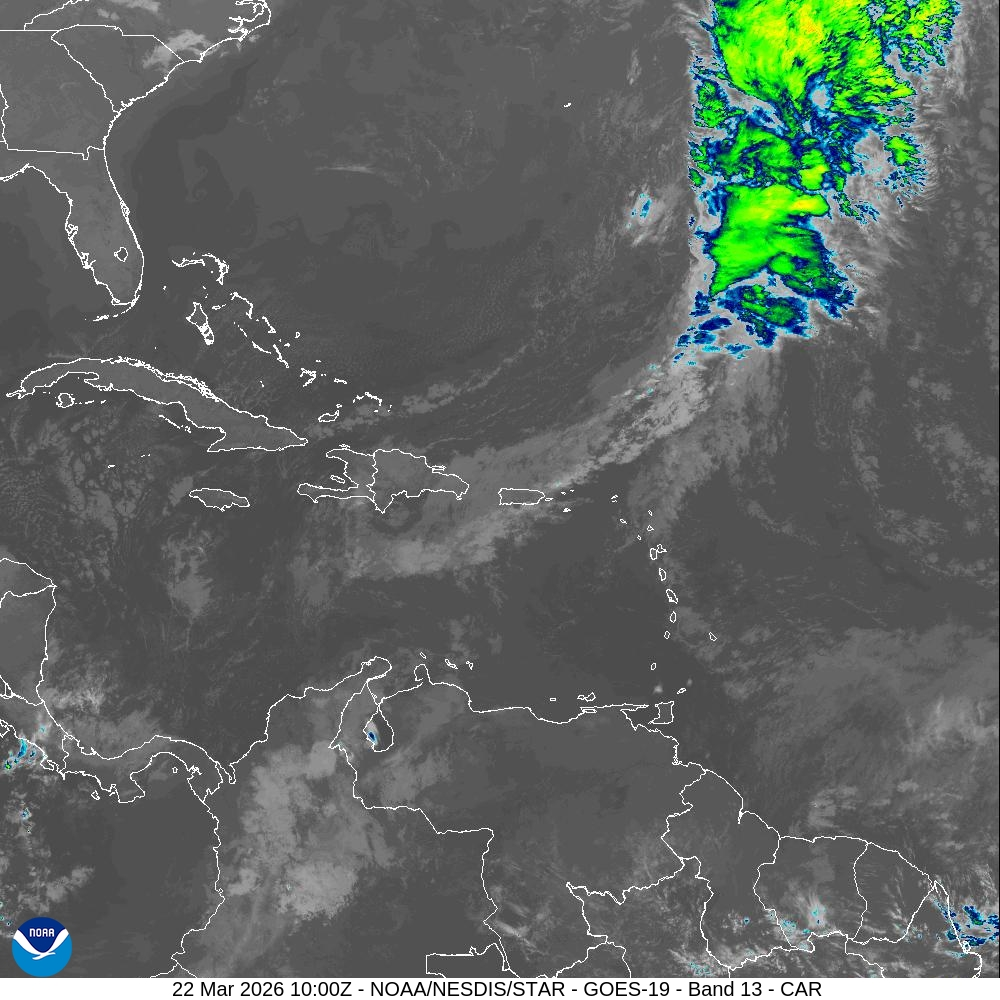 El frente frío se ubica sobre el Canal de la Mona saliendo del territorio nacional lo que ha provocado una disminución de las lluvias.