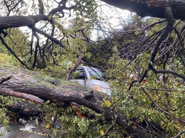 • El drama se vive entre los propietarios de los vehículos afectados quienes observan los restos de sus automóviles bajo los árboles caídos con desesperación.