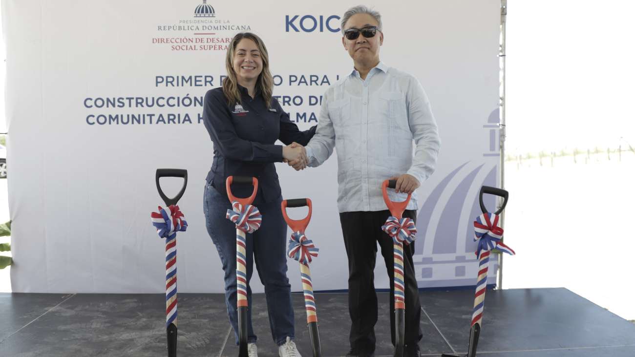 Montecristi.- La directora de Desarrollo Social Supérate, Gloria Reyes, y el embajador de Corea del Sur en la República Dominicana, Sang Ryul Lee, encabezaron la delegación que el pasado viernes, en un acto simbólico, dieron el primer palazo para la construcción del Centro de Superación Comunitaria Hatillo Palma, Montecristi.