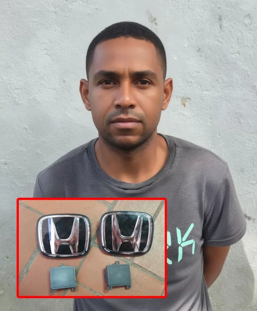 Informe preliminar indica Cuevas sustrajo emblema y sensor vehículo Honda CR-V negro estacionado calle José Reyes esquina Mercedes.