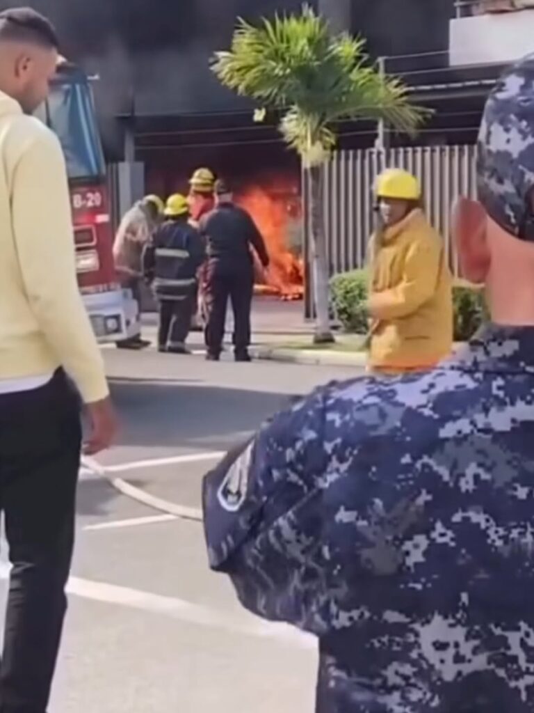 Distrito Nacional, República Dominicana. —Un vehículo se incendió la tarde de este domingo en el parqueo de un edificio ubicado en la calle Ramón Santana esquina Benito Monción, próximo a la Casa de la Fuerza del Pueblo, en el sector Gascue, generando alarma entre residentes y transeúntes de la zona.