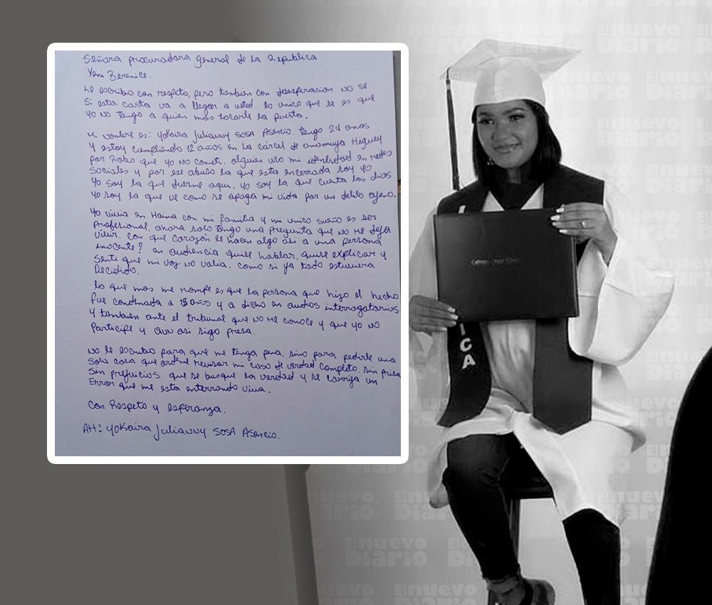 Sosa Asencio, de 24 años, cumple condena por robo que asegura no cometió, solicitando revisión judicial mediante carta dirigida a procuradora general.