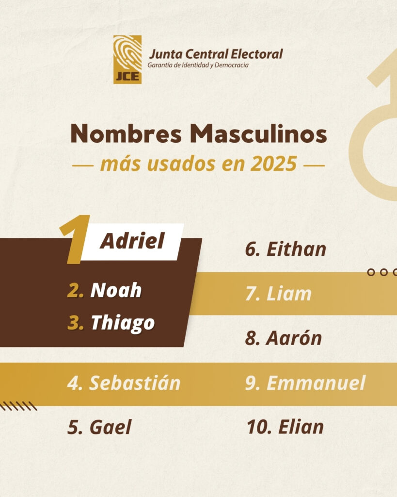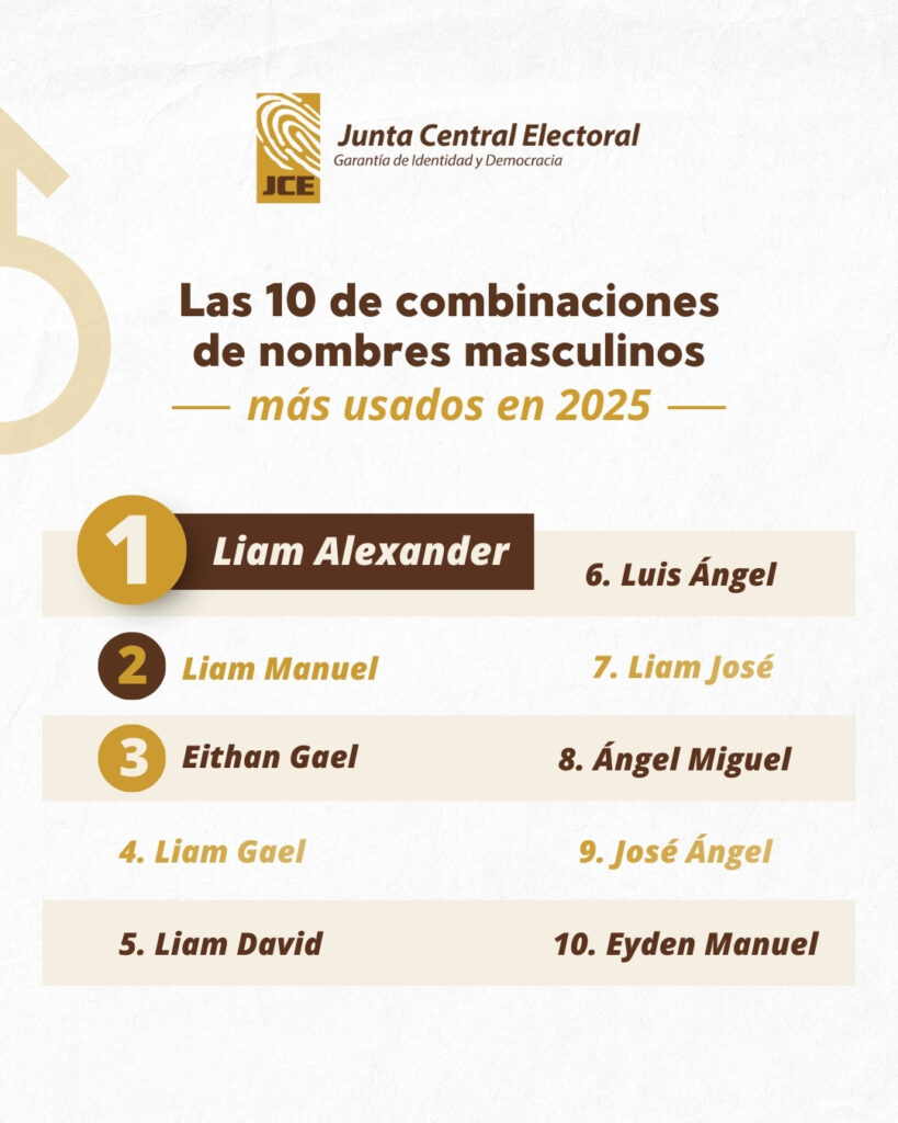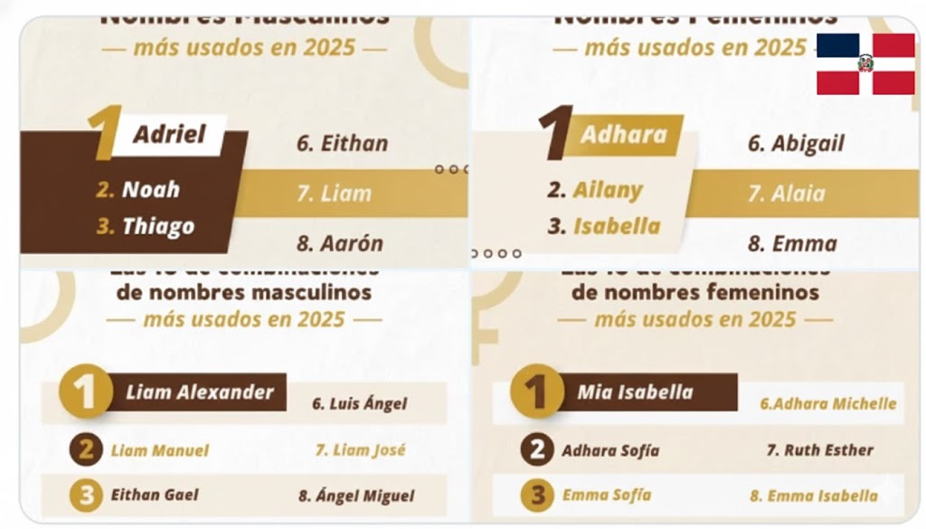 Los nombres más elegidos y combinaciones destacadas durante 2025 según la JCE