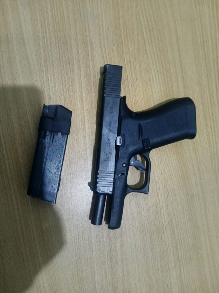 En la escena del accidente los agentes policiales lograron ocupar un arma de fuego y recuperaron varias prendas sustraídas durante el hecho delictivo.