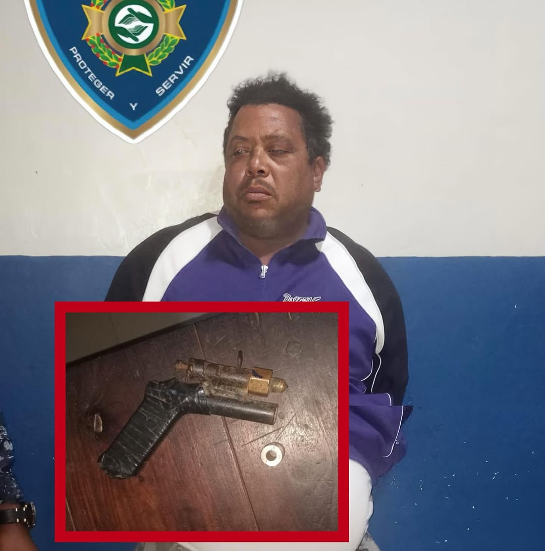 El detenido identificado como Juan Tomás Vásquez Santana, de 44 años, a quien se le incautó el arma no industrial en cuestión.