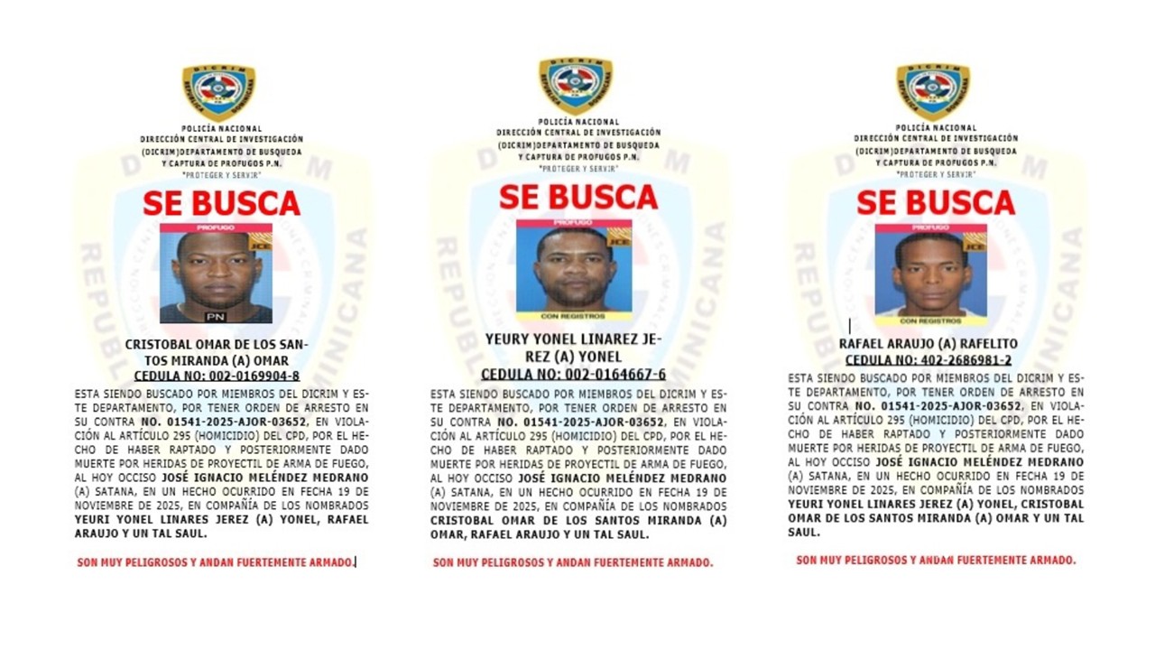 La Policía Nacional identificó a los responsables del rapto y posterior muerte por heridas de arma de fuego de José Ignacio Meléndez Medrano (a) Satana, cuyo cuerpo fue encontrado en Los Novas, San Cristóbal, tras ser reportado como desaparecido el 19 de noviembre.
