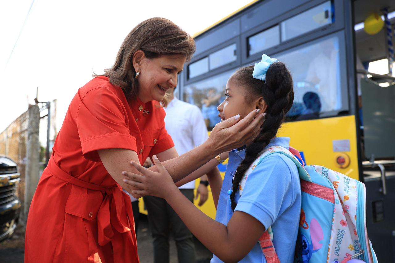 Por otro lado, además de recoger a los estudiantes, compartir con ellos en el trayecto y acompañarlos hasta la escuela, la vicepresidenta Raquel Peña anunció la incorporación de nuevas rutas del Sistema de Transporte Estudiantil para Santiago.