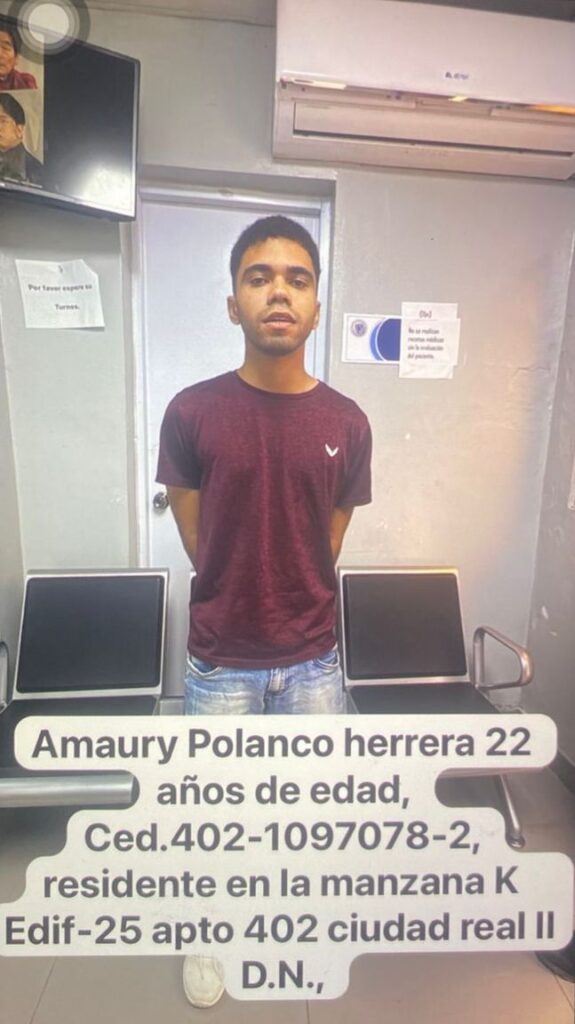 El detenido identificado como Amauri Polanco Herrera, investigado por su presunta vinculación en el caso relacionado con la pérdida de Noemí Suárez Marte, de 20 años.