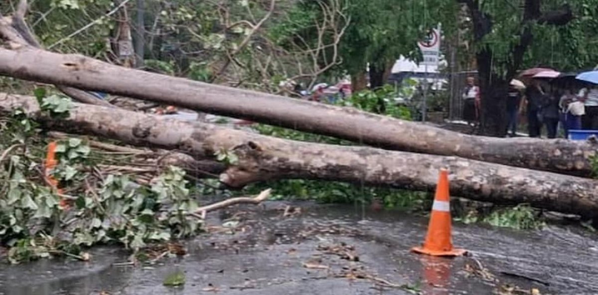 Varios árboles cayeron en la Universidad Autónoma de Santo Domingo y en el sector Gascue debido a los fuertes vientos registrados esta tarde de lunes.