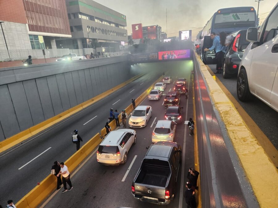 Tránsito paralizado por incendio de automóvil en túnel de la 27 de Febrero