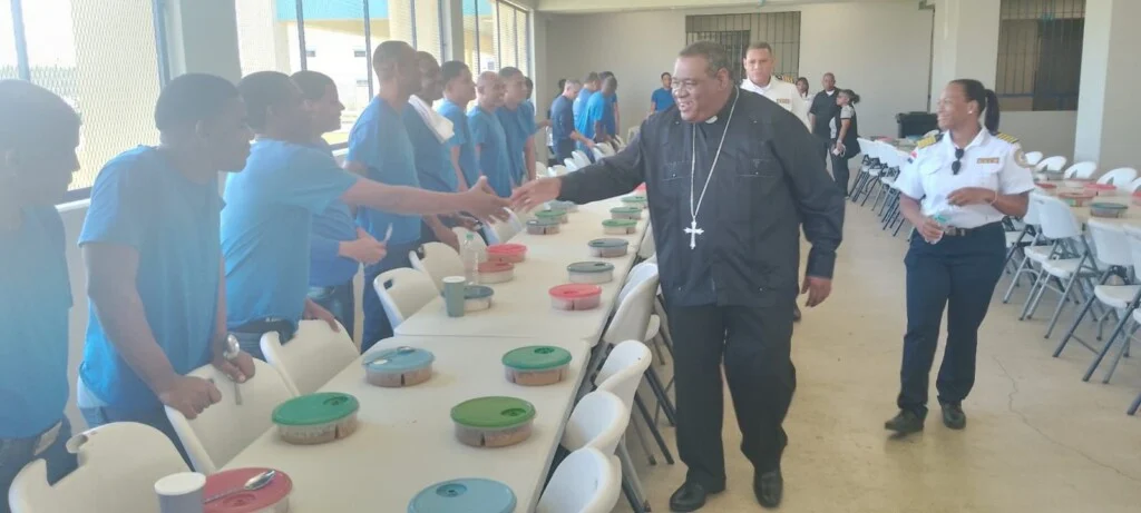 La delegación eclesiástica fue recibida por la directora del centro María Soriano quien estuvo acompañada de otras autoridades penitenciarias de la provincia dominicana.