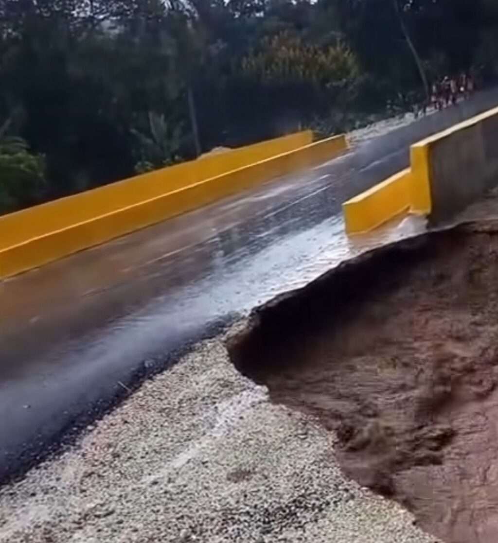 Reportan socavón provocado por las fuertes lluvias en Juan Santiago