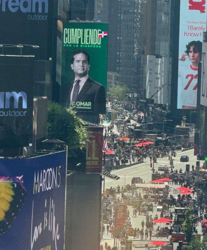 Santo Domingo – En las últimas horas circula en redes sociales un video que muestra una valla digital con la imagen del senador dominicano Omar Fernández, proyectada en pleno Times Square, en el centro de Manhattan.