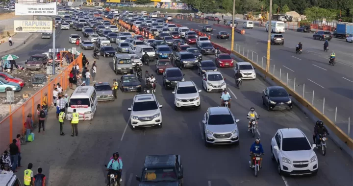 Persisten congestionamientos vehiculares en el kilómetro 9 de la autopista Duarte por alto flujo de tránsito
