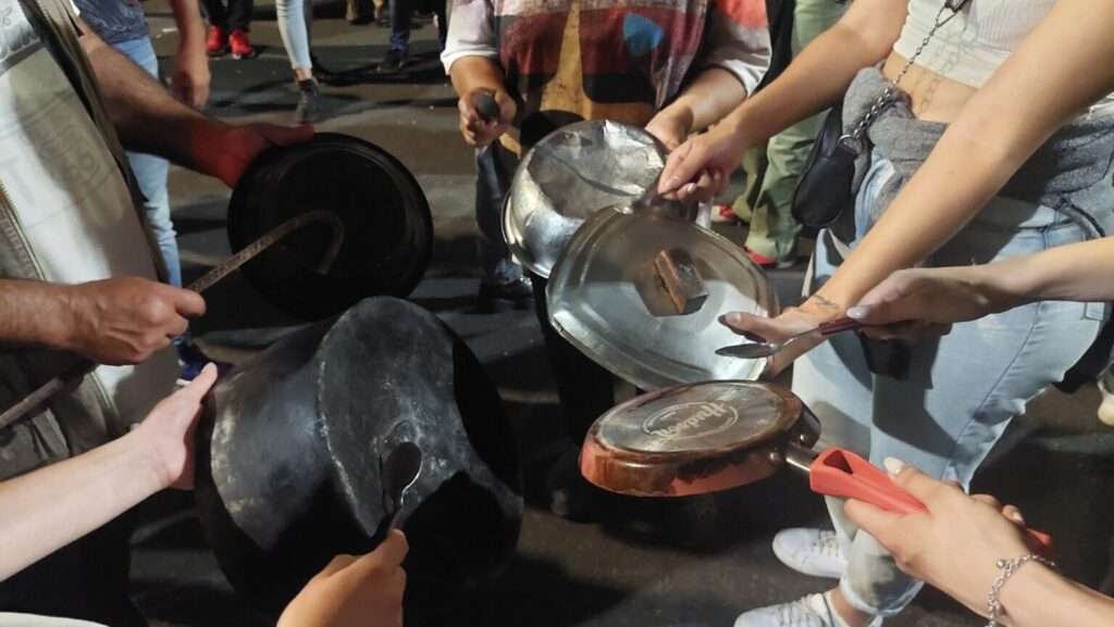 Con calderos, tapas y objetos metálicos, los comunitarios hicieron sentir su descontento frente a las prolongadas interrupciones eléctricas que, según denunciaron, han alterado sus actividades cotidianas, afectado el comercio y puesto en riesgo la seguridad de las familias.