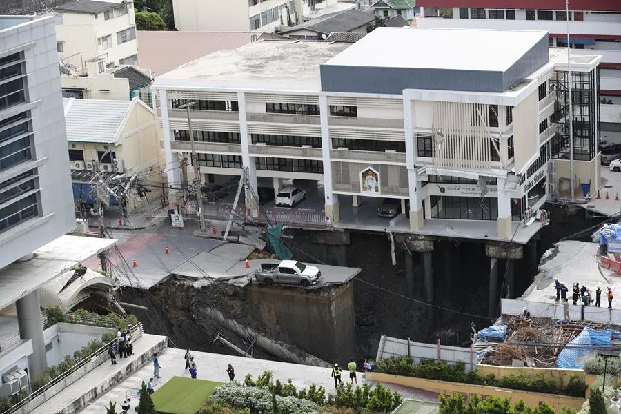 Según la cadena pública Thai PBS, un edificio policial situado cerca del hundimiento también fue desalojado, si bien las autoridades creen que los daños están controlados en el lugar.
